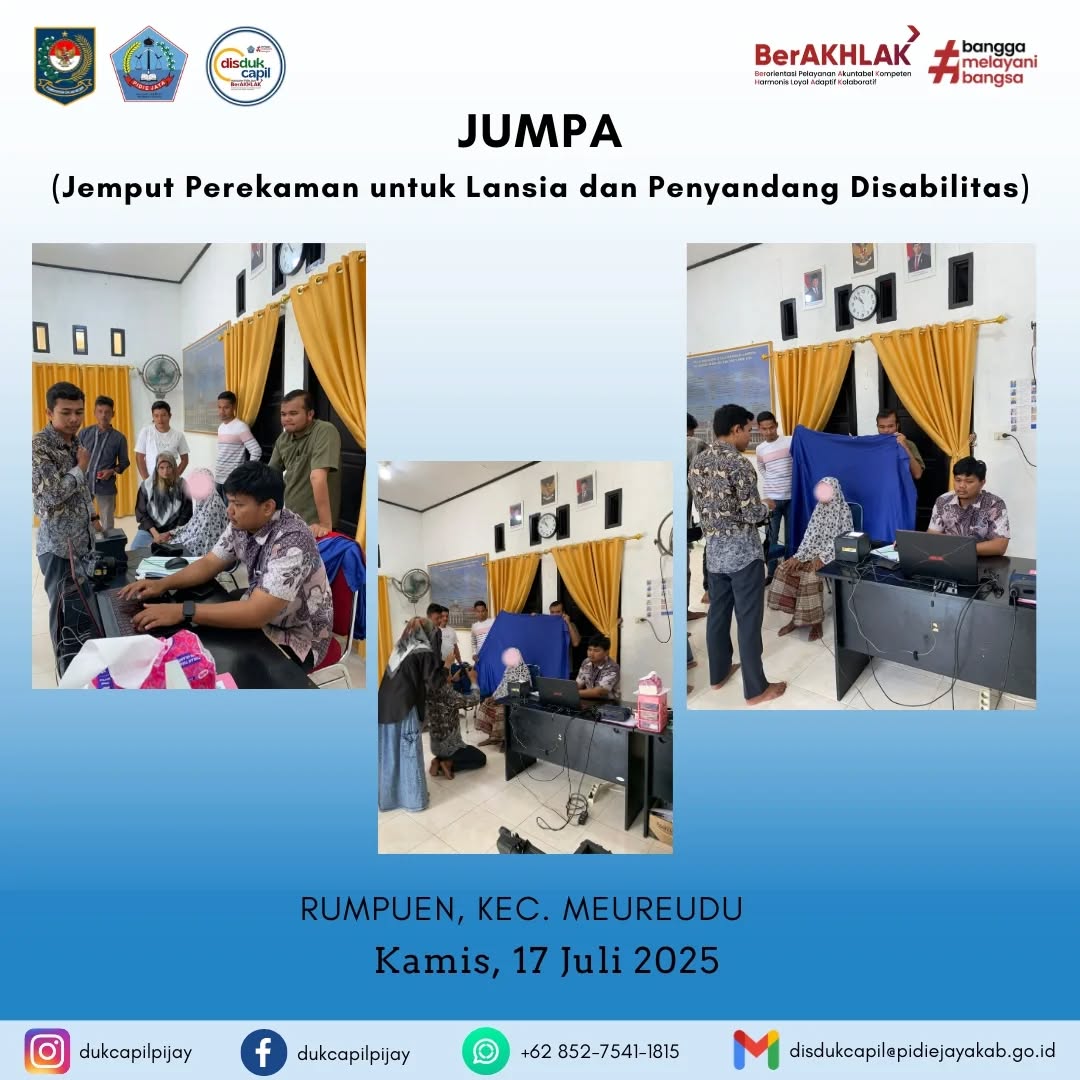 Disdukcapil Pidie Jaya Hadirkan Program JUMPA untuk Lansia dan Penyandang Disabilitas Admin 14 Januari 2025
